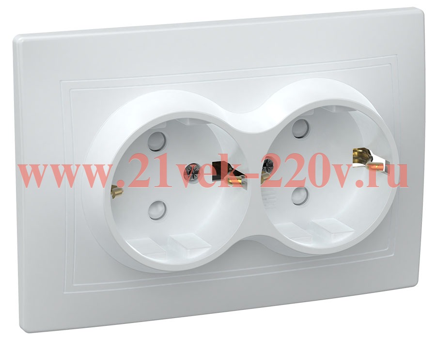 Розетка двойная 2х2P+E Schuko со шторками 16А керамика IEK КВАРТА белый (РСш12-3-КБ)