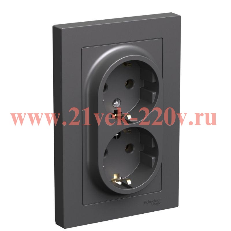 Розетка электрическая, штепсельная, двойная Атлас Дизайн для скрытой установки с заземляющим контактом, цвет базальт