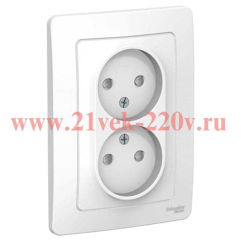 Двухпостовая розетка скрытого монтажа (встраиваемая) без заземления, с защитными шторками, Бланка Систем Электрик, белого цвета