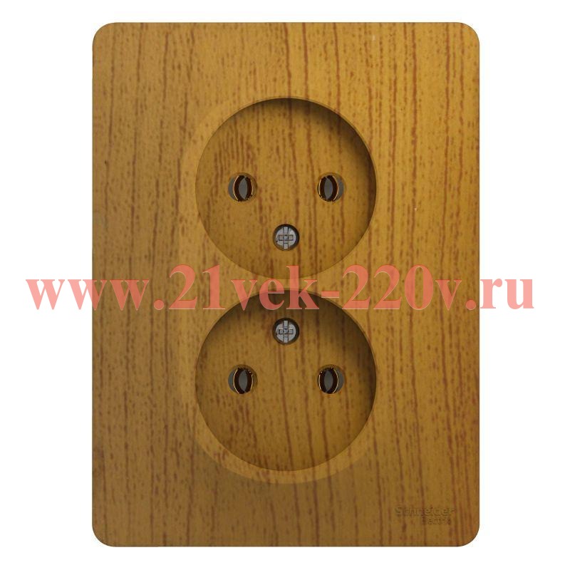 Двойная розетка без заземляющего контакта (в сборе с рамкой), цвет - дерево дуб Schneider Electric Glossa