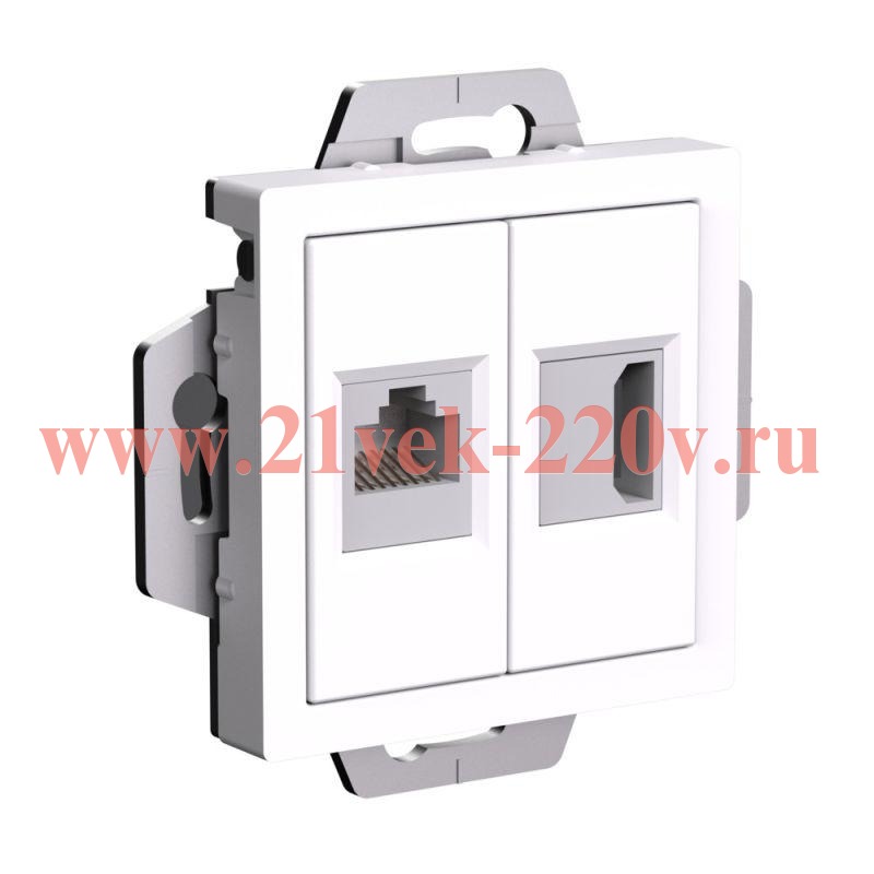 Комбинированная мультимедийная розетка HDMI с информационным разъемом RJ45 скрытого монтажа, белого цвета