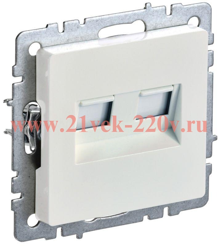 Информационная двухместная розетка с разъемами RJ11/RJ45 пятой категории для скрытого монтажа, накладка перламутрового цвета , IEK BRITE. BR-KT20-O-1-K36
