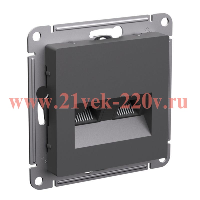 Двойная информационная розетка RJ45 пятой категории, скрытого монтажа, Атлас Дизайн, цвет базальт