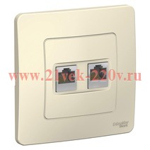 Однопостовая телекоммуникационная розетка скрытого монтажа (встраиваемая) с двумя разъемами RJ45, Бланка Систем Электрик, молочного цвета
