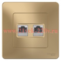 Однопостовая телекоммуникационная розетка скрытого монтажа (встраиваемая) с двумя разъемами RJ45, Бланка Систем Электрик, цвета титан