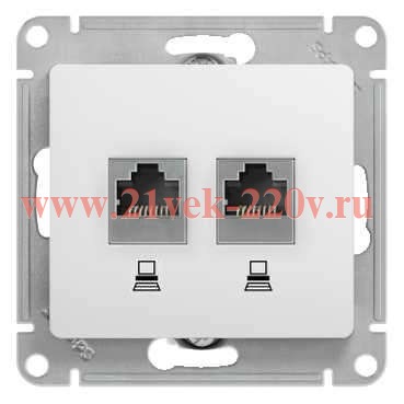 Механизм информационной розетки двойной скрытого монтажа Глосса, с разъемом RJ45+RJ45 (5e), цвет белый GSL000185KK