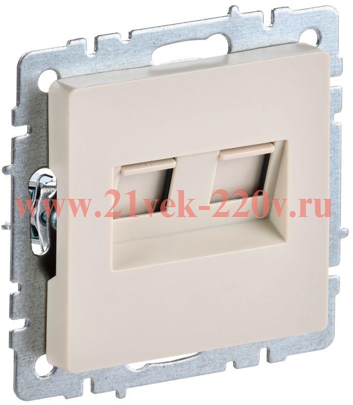 Информационная двухместная розетка с разъемами RJ11/RJ45 пятой категории для скрытого монтажа, накладка бежевого цвета , IEK BRITE. BR-KT20-O-1-K10