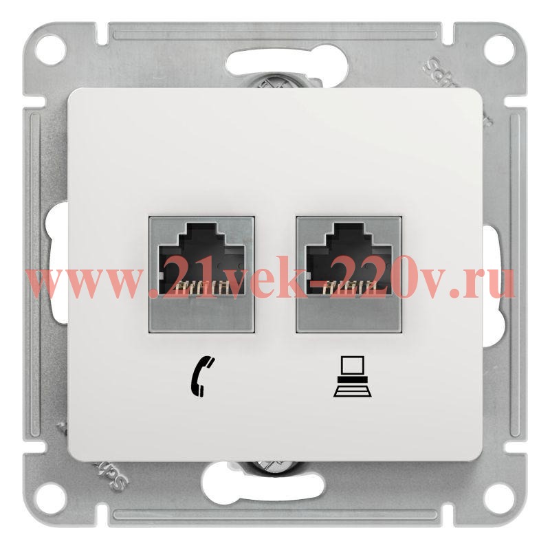 Белая двойная информационная розетка RJ11+RJ45 3/5E SE Glossa для скрытой установки GSL000185