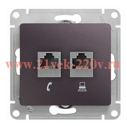 Розетка двойная RJ11+RJ45 кат5E механизм SE Glossa, сиреневый туман