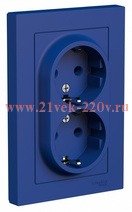 Розетка электрическая, штепсельная, двойная Шнайдер Электрик Атлас Дизайн для скрытой установки с заземляющим контактом, цвет аквамарин