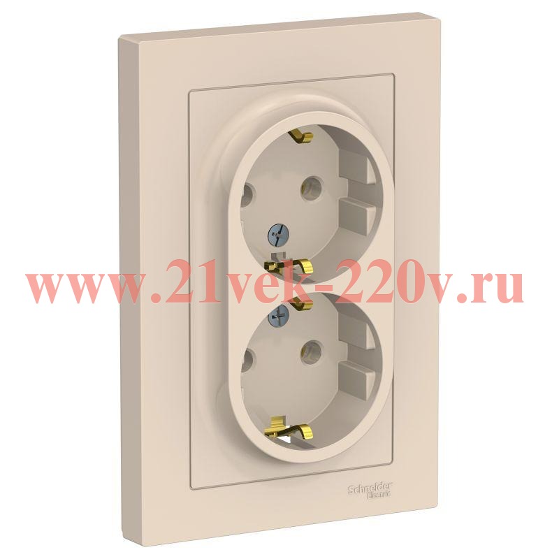 Розетка двойная SE AtlasDesign (в сборе, цвет бежевый) с заземлением, без шторок подходит для сетей 250 В, на ток 16 А. Пластик с ионами серебра обеспечивает антибактериальный эффект. Заземляющий контакт обеспечивает дополнительную защиту от удара электрическим током. Лицевые детали из качественного ABS-пластика, устойчивого к царапинам и УФ-излучению. Двойная розетка позволяет подключить два устройства в одном месте. Изделие поставляется в комплекте с рамкой того же цвета.