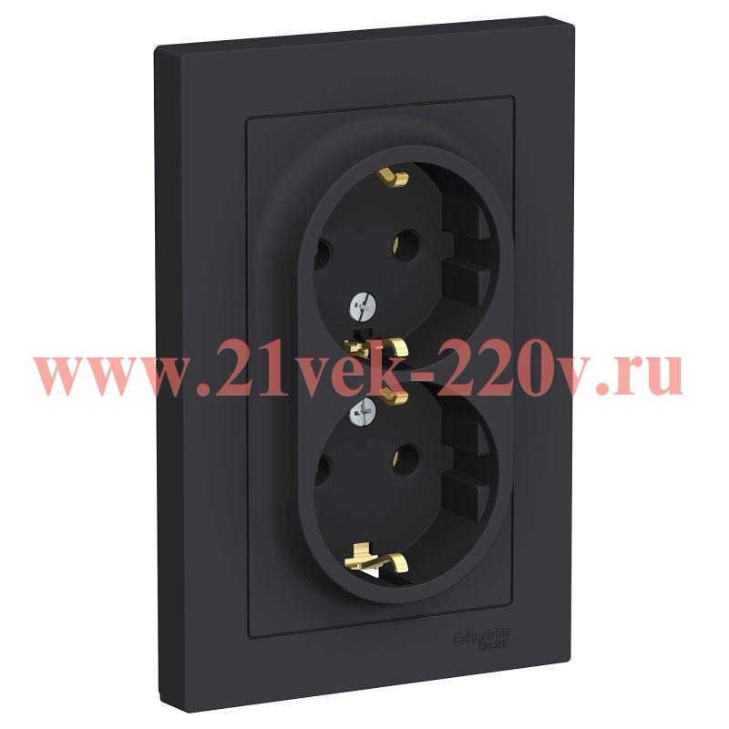 Розетка двойная SE AtlasDesign (в сборе, цвет карбон) с заземлением, без шторок подходит для сетей 250 В, на ток 16 А.- Заземляющий контакт обеспечивает дополнительную защиту от удара электрическим током.- Двойная розетка позволяет подключить два устройства в одном месте.- Изделие поставляется в комплекте с рамкой того же цвета.- Благодаря покрытию «soft touch» к изделию приятно прикасаться.