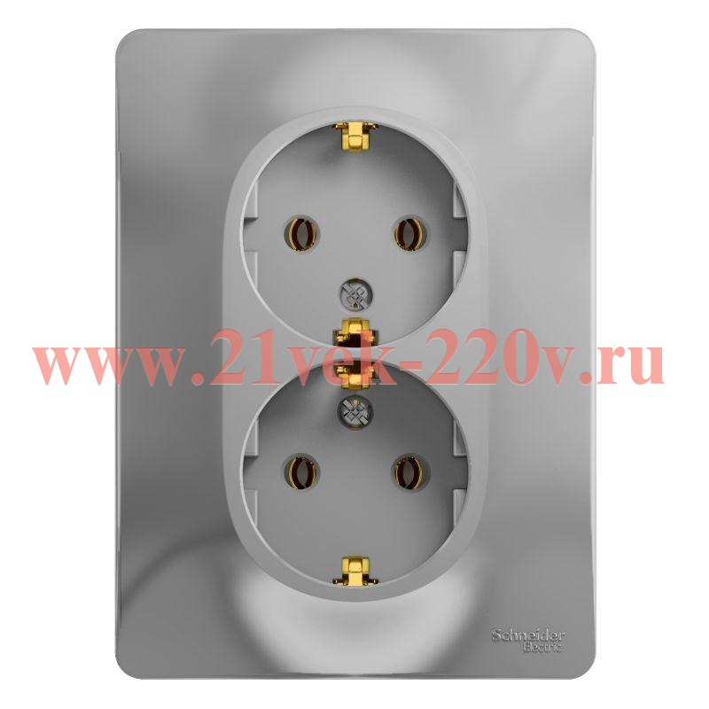 Двойная розетка c заземляющим контактом (в сборе с рамкой), цвет - алюминий Schneider Electric Glossa