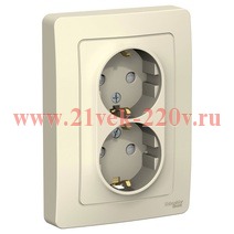 Двухпостовая розетка скрытого монтажа (встраиваемая) с заземляющим контактами и защитными шторками, Бланка Систем Электрик, молочного цвета