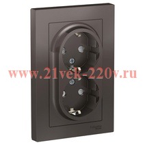 Розетка электрическая, штепсельная, двойная со шторками Атлас Дизайн для скрытой установки с заземляющим контактом, цвет мокко ATN000626