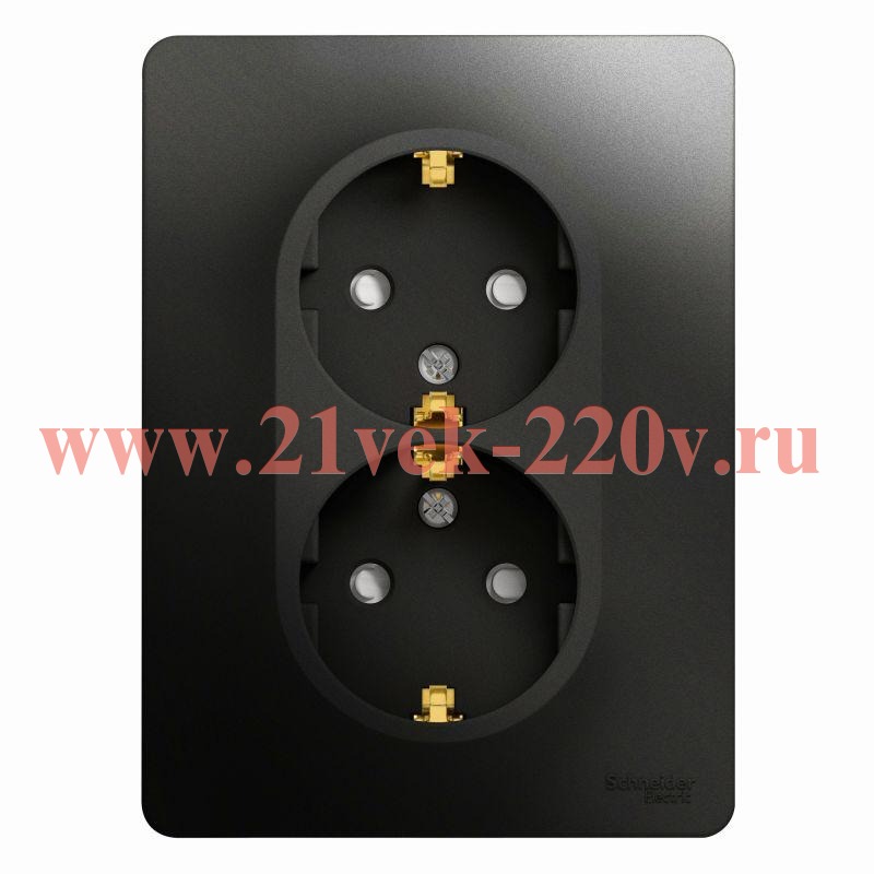 Двойная розетка c заземляющим контактом и шторками (в сборе с рамкой) антрацит Schneider Electric Glossa