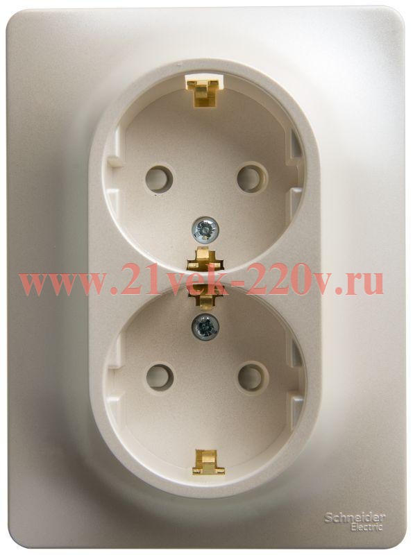 Двойная розетка c заземляющим контактом и шторками (в сборе с рамкой) перламутровая Schneider Electric Glossa