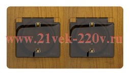 Розетка двойная с заземлением со шторками в сборе IP44 SE Glossa, дуб