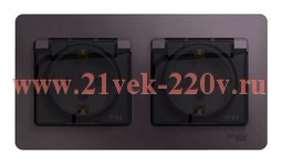 Розетка двойная с заземлением со шторками в сборе IP44 SE Glossa, сиреневый туман
