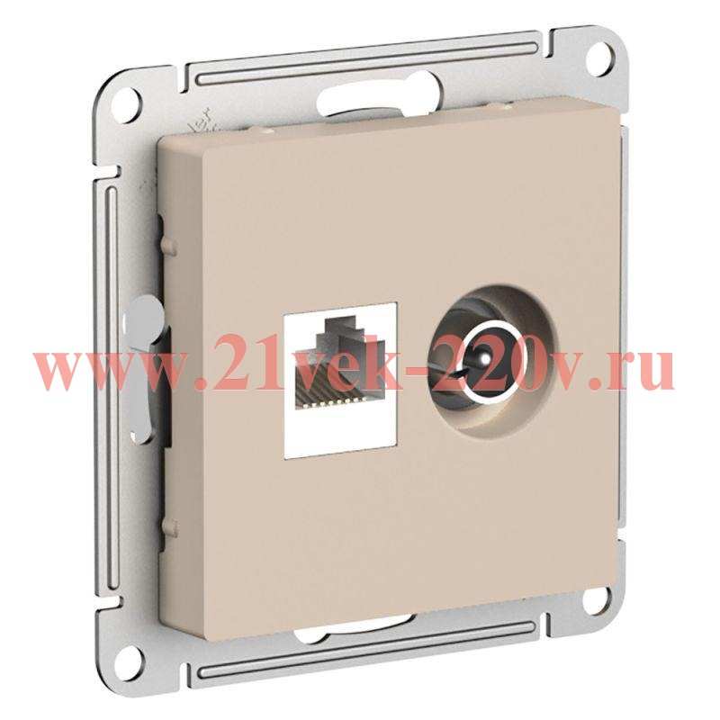 Встраиваемая комбинированная телевизионная и интернет розетка АтласДизайн, песочного цвета ATN001289