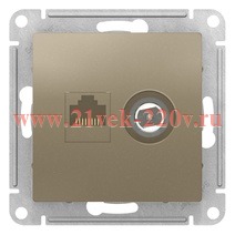Встраиваемая комбинированная телевизионная и интернет розетка пятой категории, цвет шампань, Атлас Дизайн ATN000589