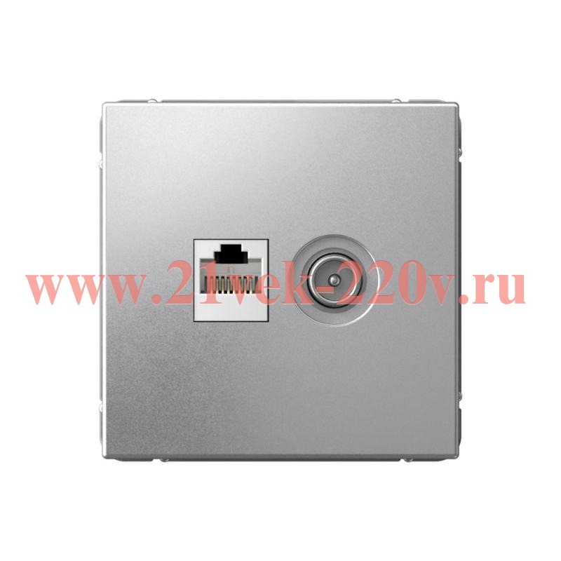 Встраиваемая комбинированная телевизионная и интернет розетка пятой категории, цвет алюминий, АртГеллери
