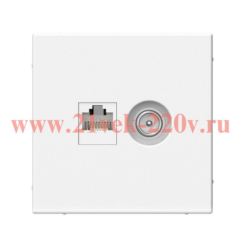 Встраиваемая комбинированная телевизионная и интернет розетка пятой категории, цвет белый, АртГеллери