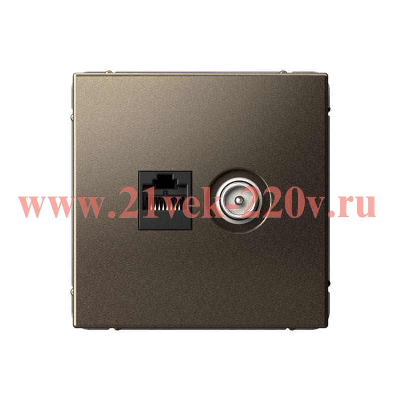 Встраиваемая комбинированная телевизионная и интернет розетка пятой категории, цвет мокко, АртГеллери