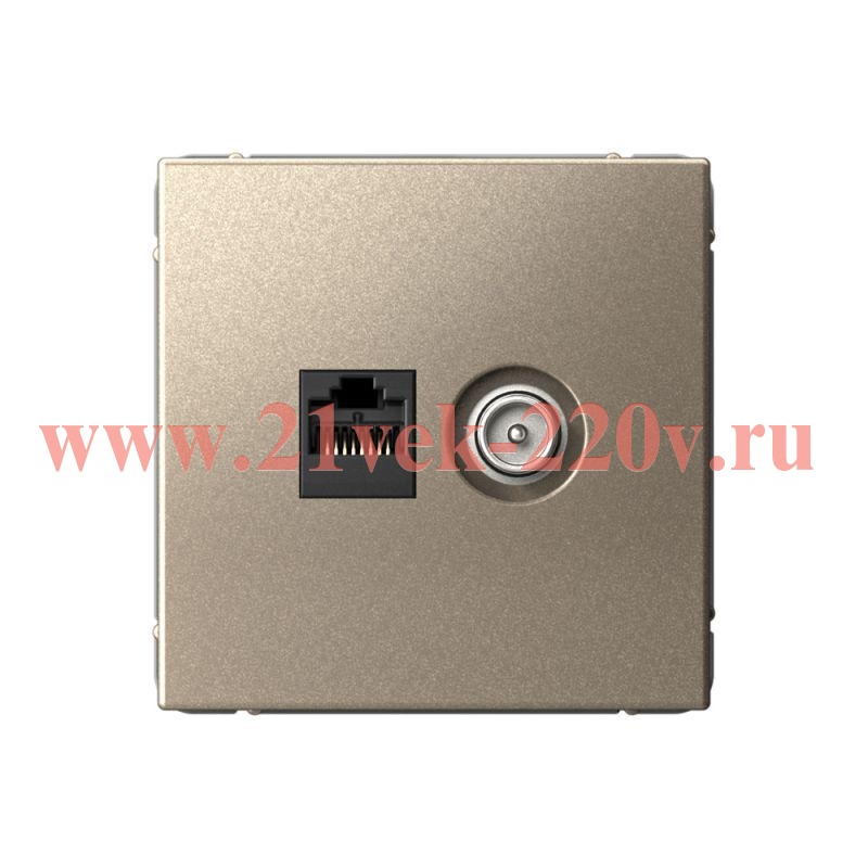Встраиваемая комбинированная телевизионная и интернет розетка пятой категории, цвет шампань, АртГеллери