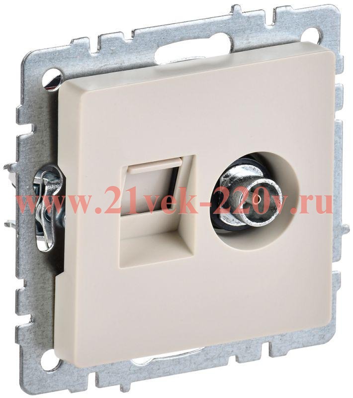 Комбинированная телеинформационная TV розетка с гнездом RJ45 пятой категории, накладка бежевого цвета для скрытого монтажа, IEK BRITE. BR-AK20-1-K10