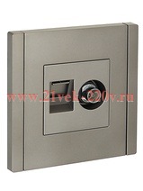Механизм комбинированной розетки скрытого монтажа с разъемом RJ45 категории 6 и TV стального цвета FP-AK20-2-K46