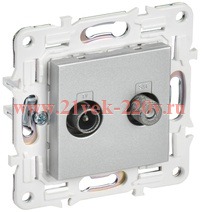 Одноместная телевизионная (антенная) розетка ТВ-СЕТ скрытого монтажа цвета серебро