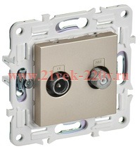 Одноместная телевизионная (антенная) розетка ТВ-СЕТ скрытого монтажа цвета шампань