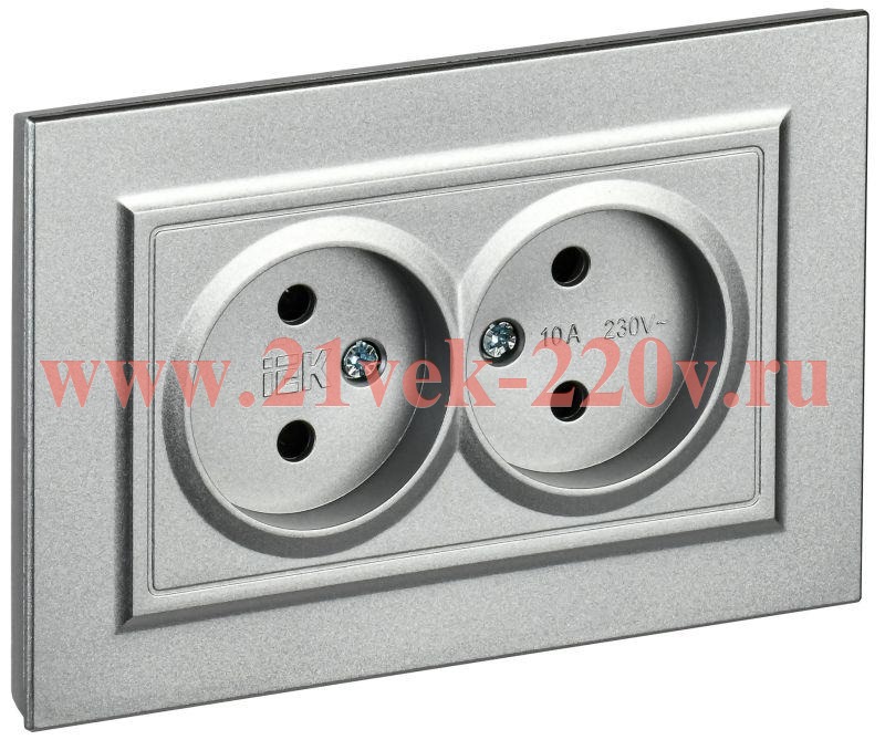 Двухместная двухполюсная электрическая розетка цвета алюминий для скрытого монтажа в одну монтажную коробку, IEK BRITE BR-R20-10-K47-F