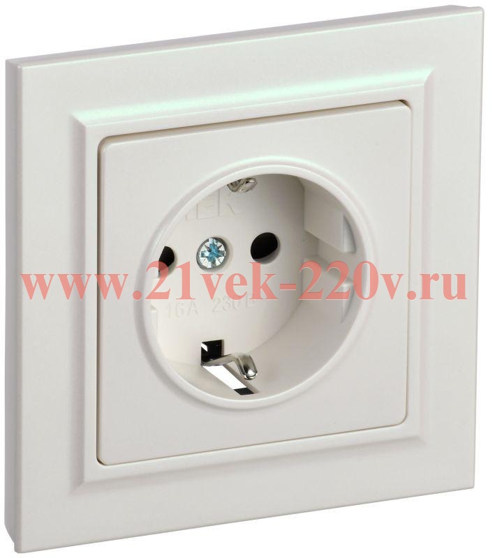 Механизм электрической розетки немецкого стандарта с защитными шторками и лицевой панелью перламутрового цвета для скрытого монтажа, с рамкой, IEK BRITE. BR-R14-16-K36-F