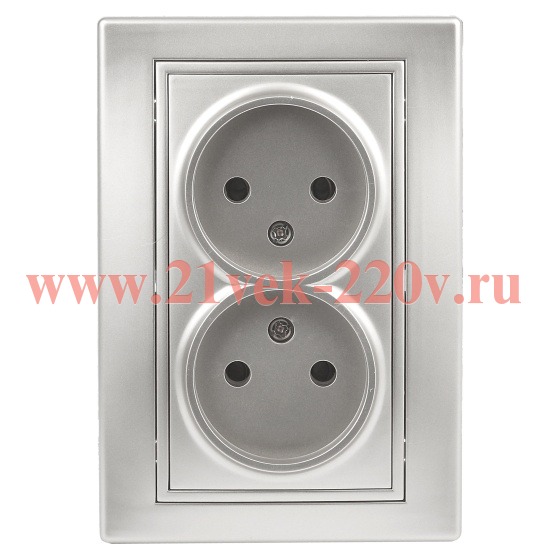 Розетка Intro Plano 1-204-03 без заземления двойная 2х2P 16А-250В IP20 СУ алюминий