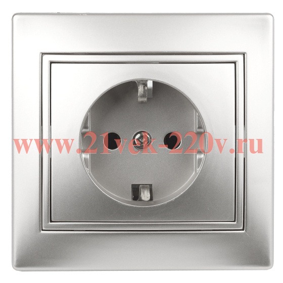 Розетка Intro Plano 1-206-03 с заземлением 2P+E Schuko со шторками 16А-250В IP20 СУ алюминий