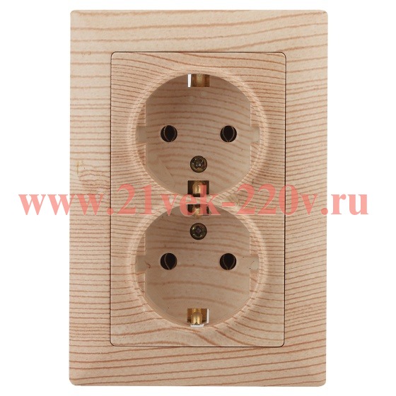 Розетка Intro Solo 4-205-11 с заземлением двойная 2X2P+E Schuko 16А-250В IP20 СУ сосна