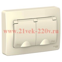 Двухместная розетка скрытого монтажа, с заземляющими контактами, с крышкой и защитными шторками, Бланка Систем Электрик, молочного цвета