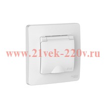 Однопостовая влагозащищенная розетка скрытой установки (встраиваемая) с заземляющим контактом, защитными шторками и крышкой, Бланка Систем Электрик, белого цвета