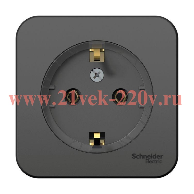 Розетка О/У с заземлением, без шторок, с изолирующей пластиной, 16А, 250В, антрацит Schneider Electric Blanca