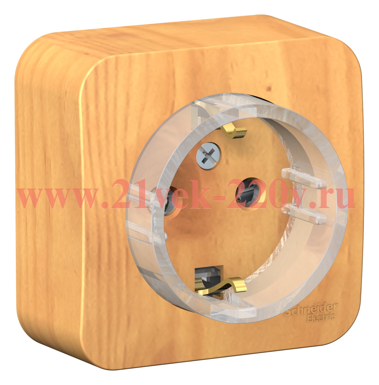 Розетка О/У с заземлением, со шторками, с изолирующей пластиной, 16А, 250В, ясень Schneider Electric Blanca