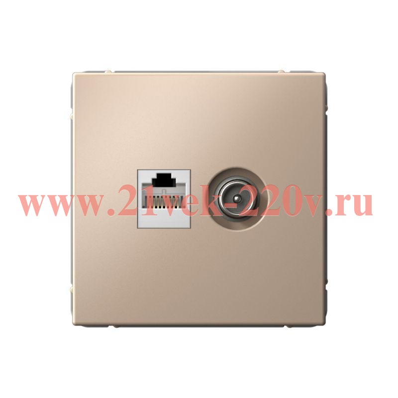 Встраиваемая комбинированная телевизионная и интернет розетка пятой категории, цвет песочный, АртГеллери