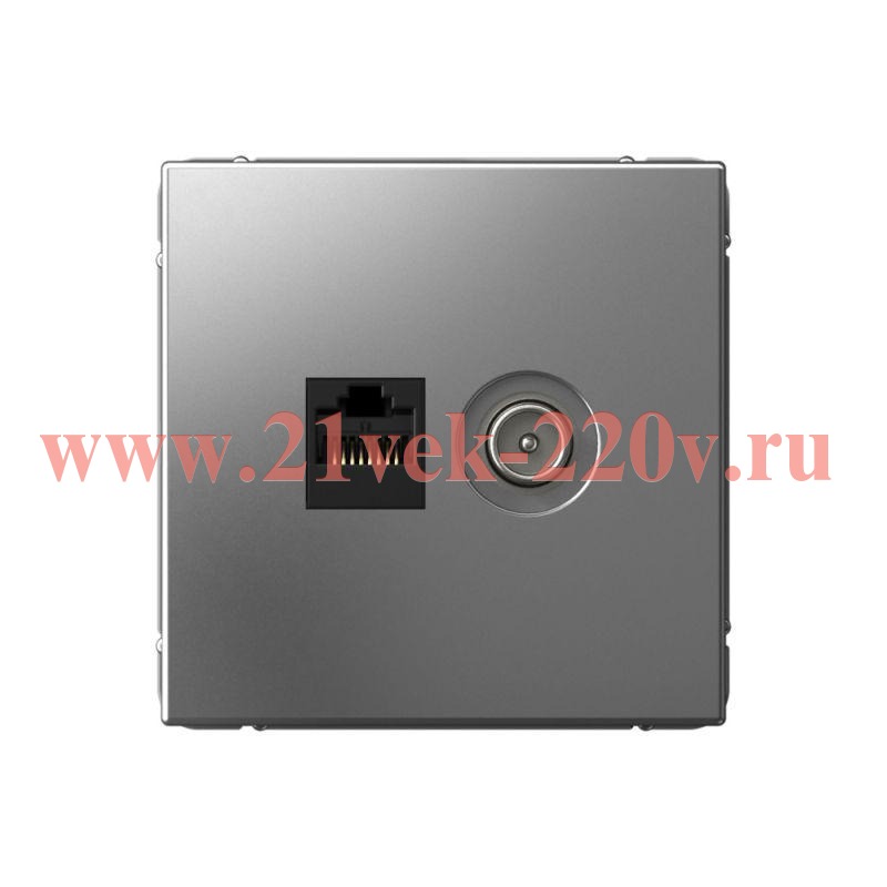 Встраиваемая комбинированная телевизионная и интернет розетка пятой категории, цвет сталь, АртГеллери