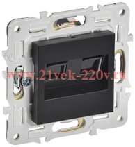 Одноместная информационная розетка с двумя разъемами RJ45 категории 6 скрытого монтажа цвет черный