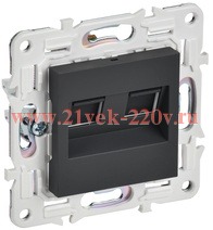Одноместная информационная розетка с двумя разъемами RJ45 категории 6 скрытого монтажа цвета графит