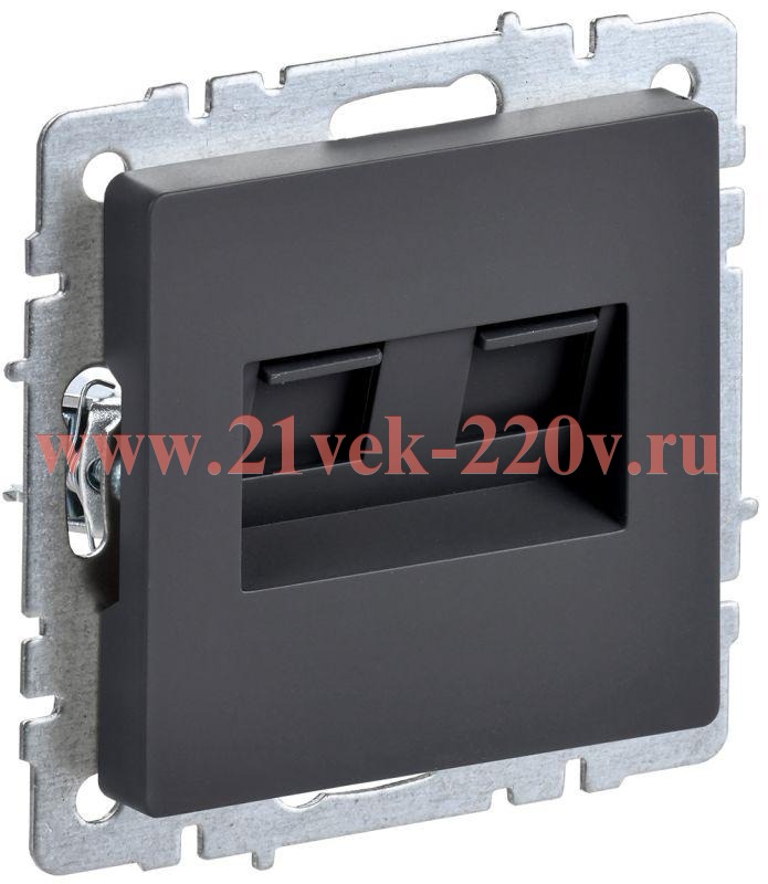 Информационная двухместная розетка с разъемами RJ45 пятой категории для скрытого монтажа, накладка графитового цвета , IEK BRITE. BR-K20-1-K53