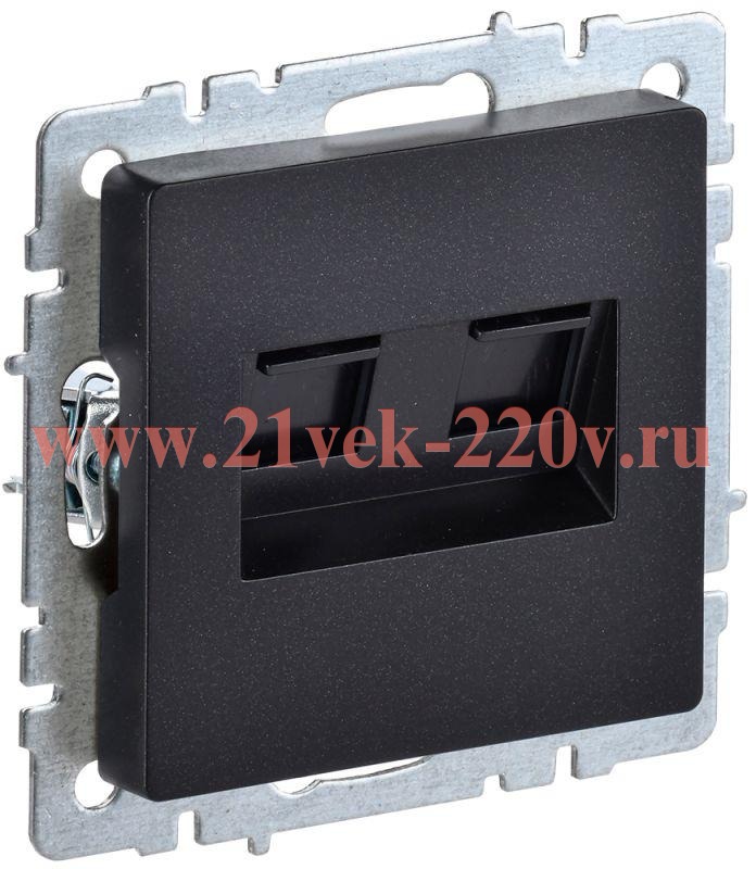 Информационная двухместная розетка с гнездом RJ45 шестой категории, накладка черного цвета для скрытого монтажа, IEK BRITE. BR-K20-2-K02
