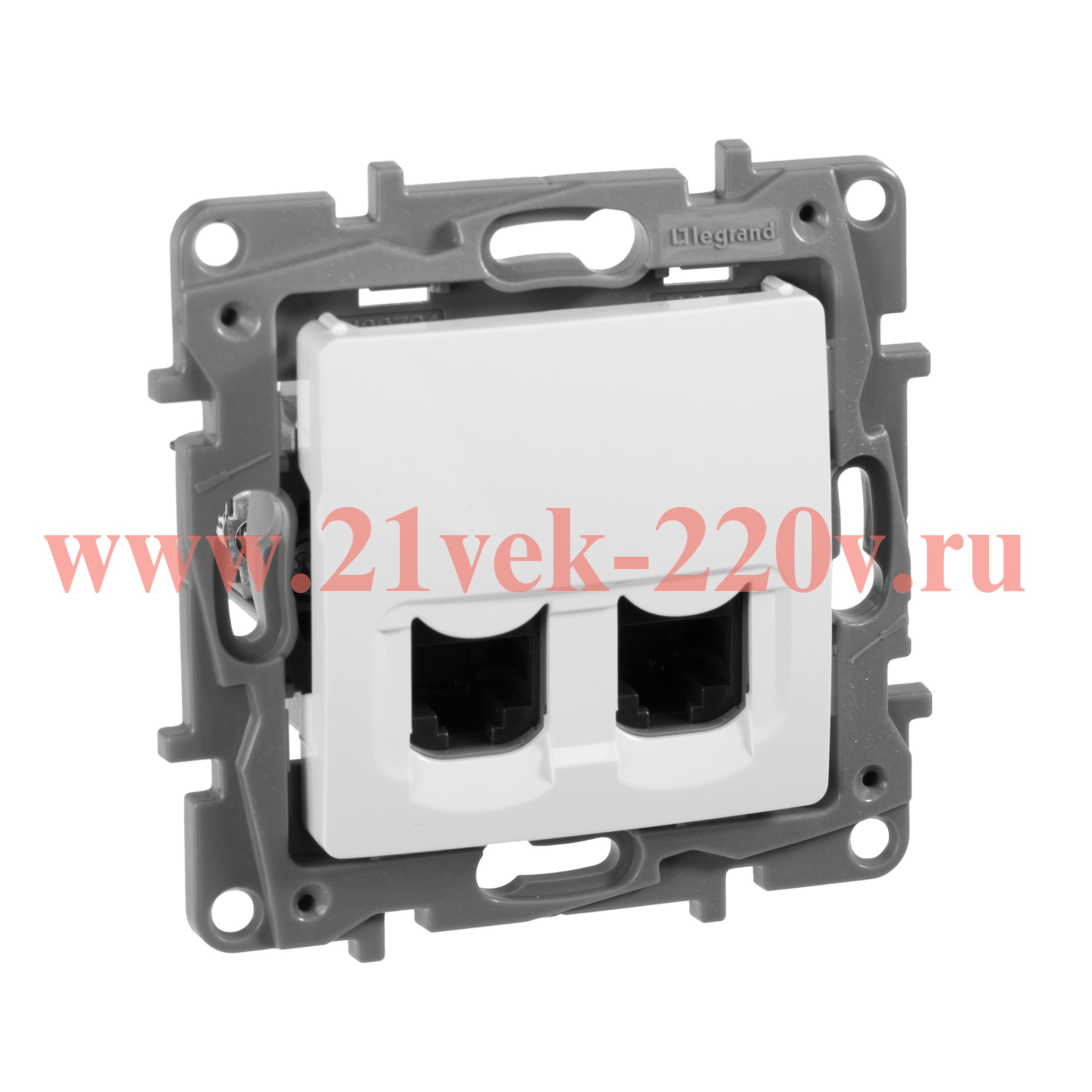 Двойная компьютерная розетка (672255) с двумя разъемами RJ45 категории 5e UTP фирмы Легранд (Legrand) серии Этика (Etika). Цвет - белый.