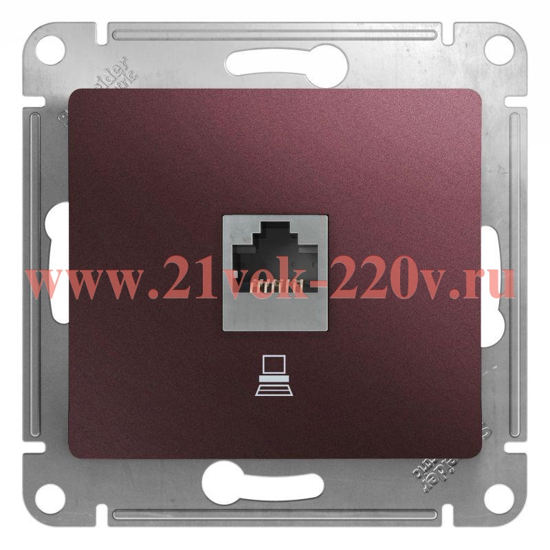 Розетка компьютерная от компании Schneider Electric из серии Glossa предназначена для быстрого подключения персональных компьютеров, принтеров, роутеров и другого оборудования к информационным сетям категории 5е со скоростью передачи данных 1 Гб/сек. Она оснащена одним гнездом с разъемом RJ45, категория 5е UTP и допускает прямое подключение 1 изделия. Присоединение информационного кабеля к розетке не требует специального инструмента. Благодаря нанесенному цветовому коду и пронумерованным контактам на коннекторе гарантирован быстрый и безошибочный монтаж. Лицевая панель розетки изготовлена из качественного европейского пластика в фиолетовом цвете, на которую нанесен значок «компьютера», обеспечивающий информативность для подключения устройства. Материал обладает стойкостью к загрязнениям, солнечным лучам и механическому воздействию. Установка самого механизма имеет скрытый тип, что значительно экономит пространство и придает интерьеру современный внешний вид. Его размеры: 71х71х35 мм, глубина встраивания – 23 мм. Класс защиты соответствует IP20. Областью применения розетки выступают жилые и малые коммерческие объекты.Механизм Schneider Electric Glossa (цвет баклажановый) розетки компьютерной с разъёмом RJ45 категория 5е предназначен для удобного и быстрого подключения вашего компьютера к компьютерной сети.- Выполнен из материала PС+ASA, стойкого к УФ-излучению и появлению царапин.